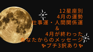 12星座別・4月の運勢 仕事運・人間関係運・四月が終わった時点でのあなたからのメッセージ。最後のプチ三択もどうぞ。
